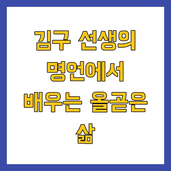 김구 선생은 외부 환경이나 타인에게 휘둘리지 않고, 자기 삶의 중심을 굳건히 세우는 것의 중요성을 거듭 강조했습니다. 올곧은 삶은 바로 '나' 자신을 바로 세우는 데서부터 시작되기 때문입니다.