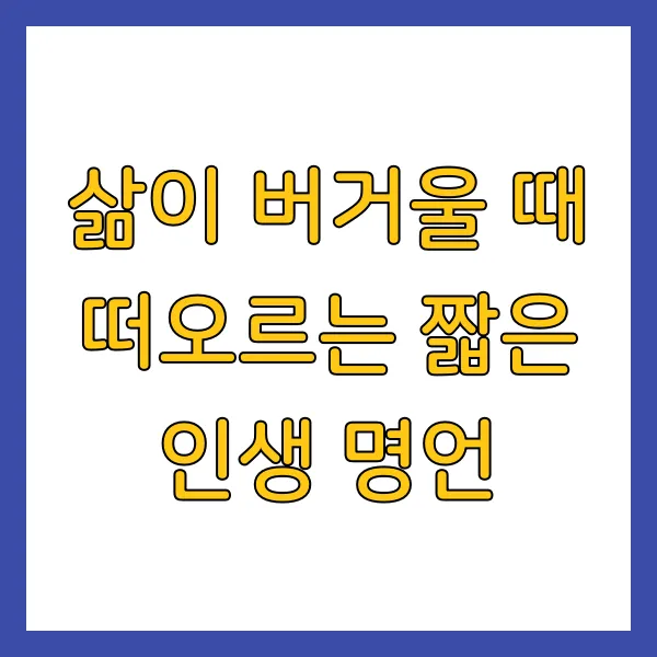 삶이 버겁고 힘겹게 느껴질 때, 잠시 멈춰 서서 이 명언들을 곱씹어보세요. 짧은 글귀 속에 담긴 깊은 지혜가 당신의 마음을 어루만지고, 세상을 살아갈 새로운 힘과 용기를 줄 것입니다. 기억하세요, 당신은 혼자가 아니며, 이 힘든 시간도 결국 지나갈 것입니다. 당신의 빛나는 내일을 응원합니다!